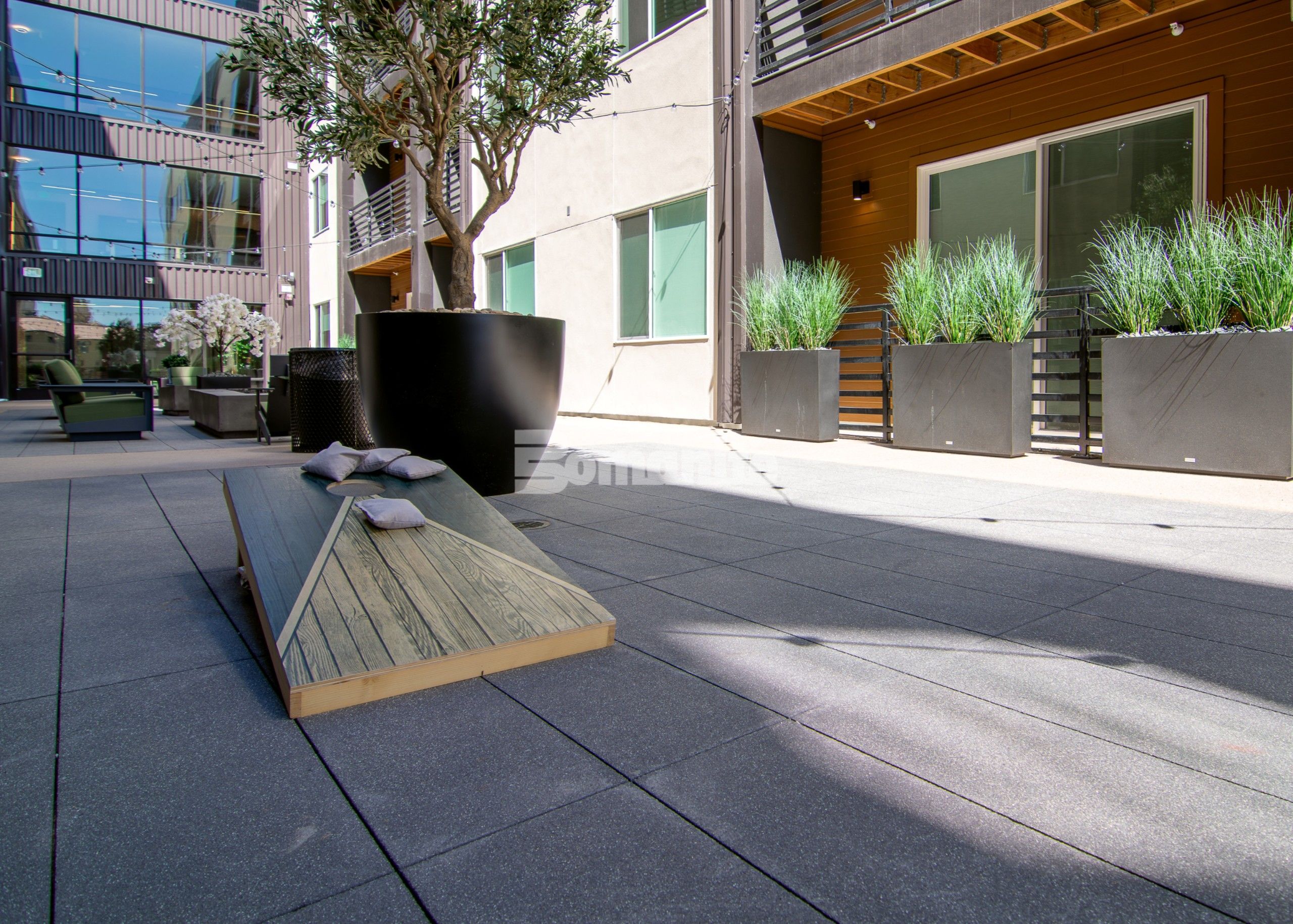 These selections allowed the Zen garden to be thoughtfully divided into three distinct spaces, creating a one-of-a-kind outdoor ambiance that complements the complex’s modern architecture.