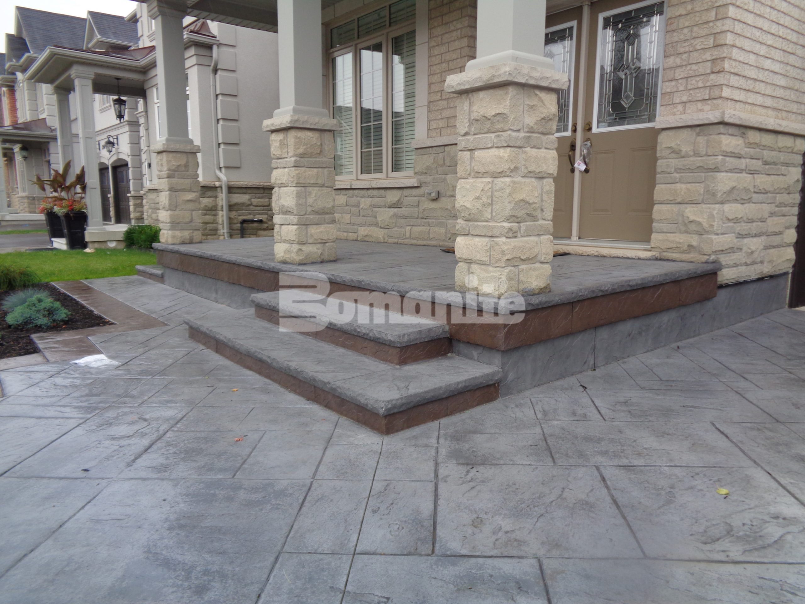 Canadian Homeowners Invest in Bomanite Decorative Concrete with an installation by Bomanite Toronto using the Yorkshire Stone Pattern for their Driveway and Patio in Burlington, Ontario Canada